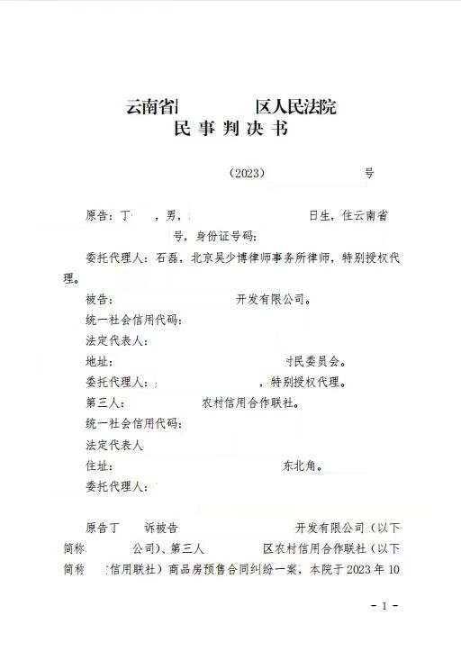 本案代理律師 北京吳少博律師事務(wù)所 石磊 案情簡介: 2021年年初,丁某等三人繳納大筆首付款