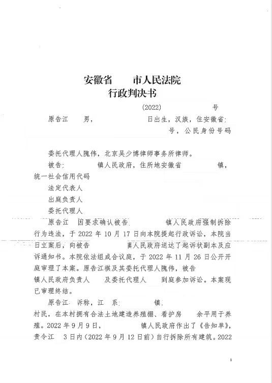 本案代理律師 北京吳少博律師事務(wù)所 賈敏慧 韓雪 前言: 自建房可以強拆嗎?在我國存在的自